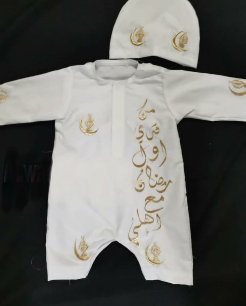 بربتوز شالكي رمضاني من بوتيك كشخةبربتوز رمضاني بالحروف العربيه و النقوش الرمضانيةبربتوز بقماش فاخر بتدخيلة مقلمةتطريز متناهي الدقةوبلمسات هادئة و راقية و مريحه للطفل.يلبس من عمر شهر الى سنتين