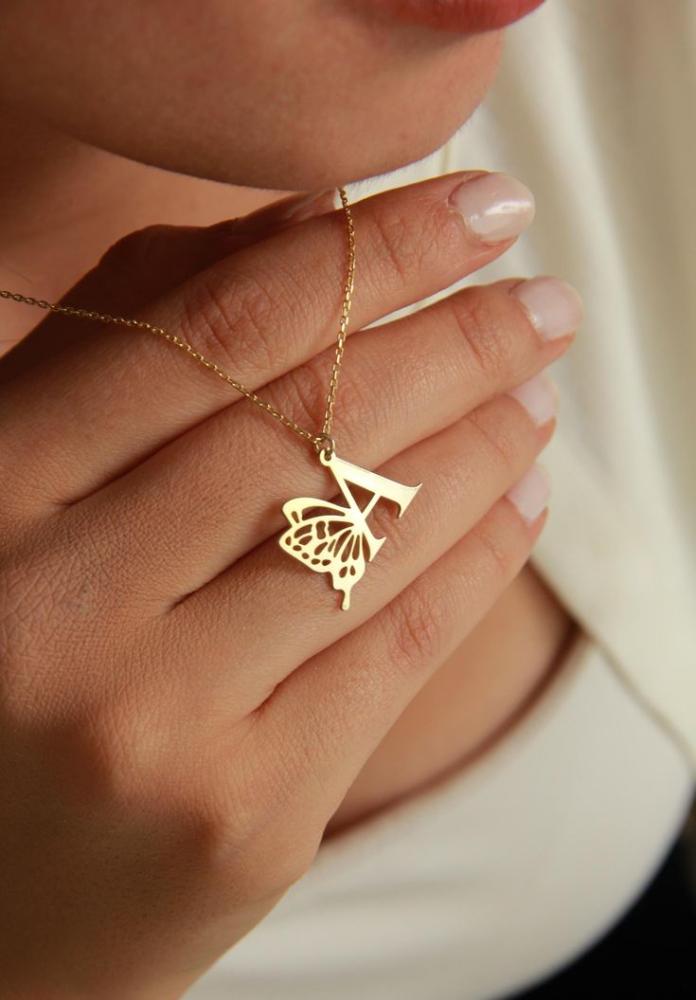 سلسال فراشة الحروف 💫✧ حرفك المفضل مع فراشة أنيقة✧ مطلي ذهب عيار 21 أو مطلي فضة بجودة عالية✧ ضمان دائم ضد تغير اللون✧ علبة هدايا فاخرة💝 هدية مثالية للأحباء🛒 اطلب الآن - توصيل سريع