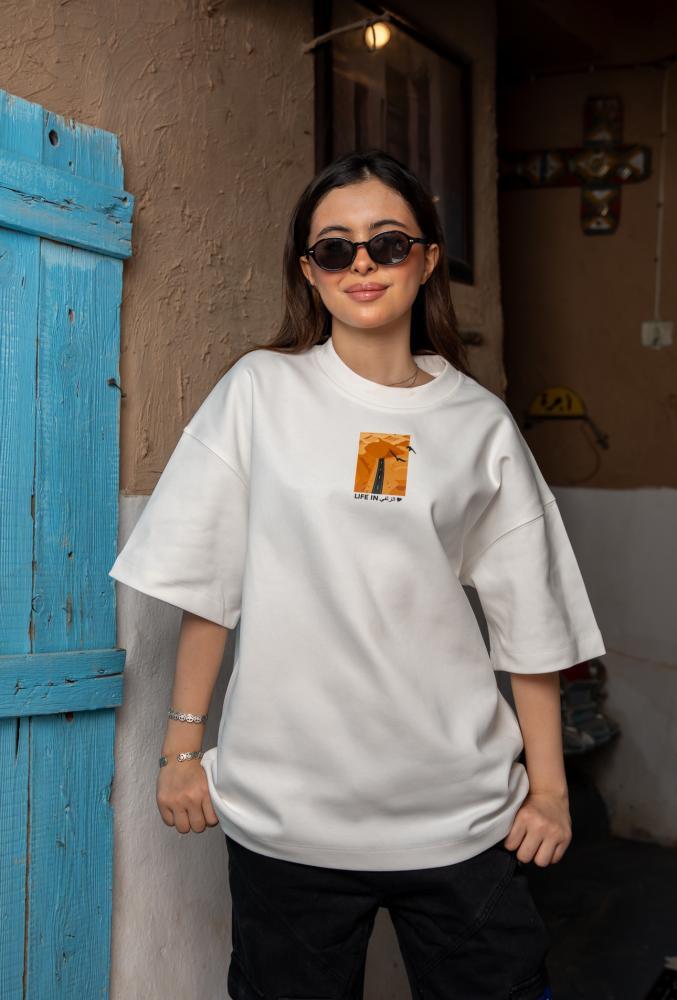 اللون ابيض - مناسب للجنسين - اوفر سايز