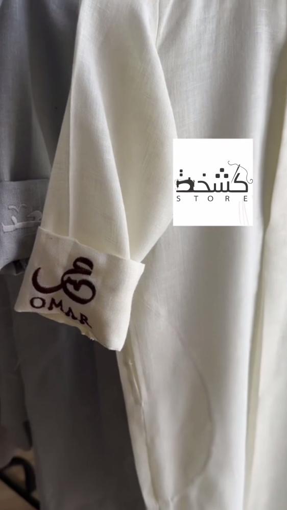 بكل حب نُسجت لكم اثواب تناسب اطفالكم وتكمل اناقتهمتطريز الاسم حسب طلب العميلالموصفات :1. قماش لنين خفيف للثوب2. خياطه وحباكه مميزه3. تفصيل فخمالمقاس يندرج تحت تفصيل حسب طلب العميلمتوفر من عمر 6 أشهر إلى 12 سنهمده الطلب من 6-8 ايام عمل