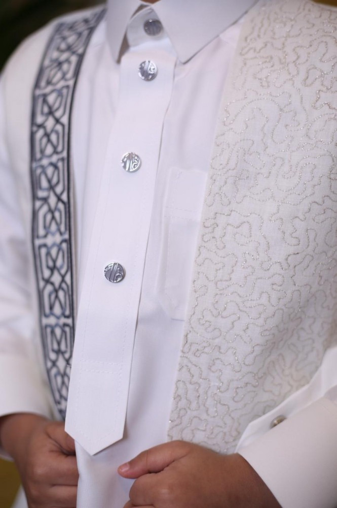 ثوب بقماش فاخر بتطريز بخيوط حرير وبلمسات معدينه تضيف الاناقه المستخدمة لطفلك